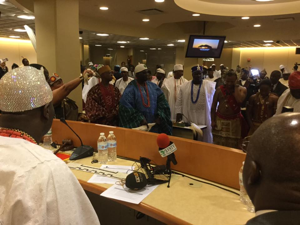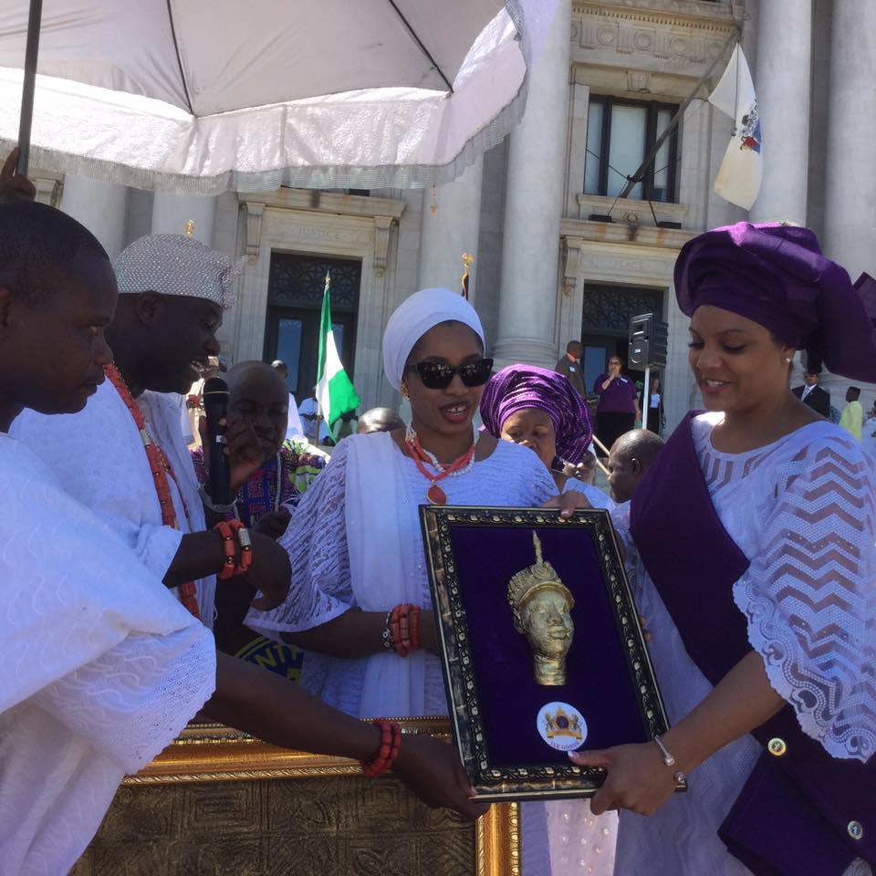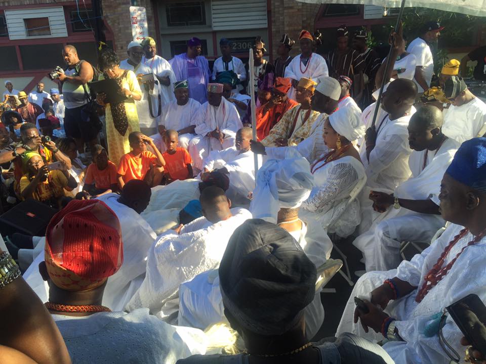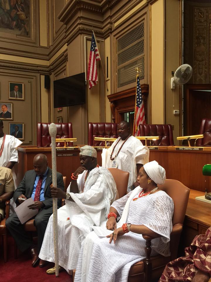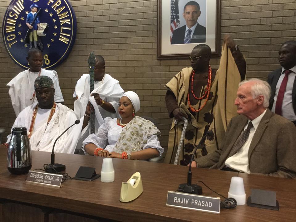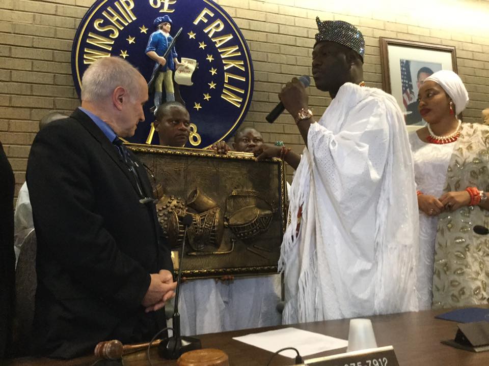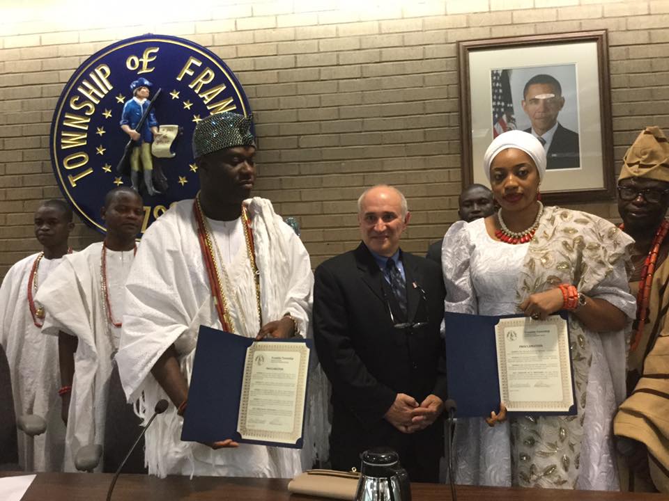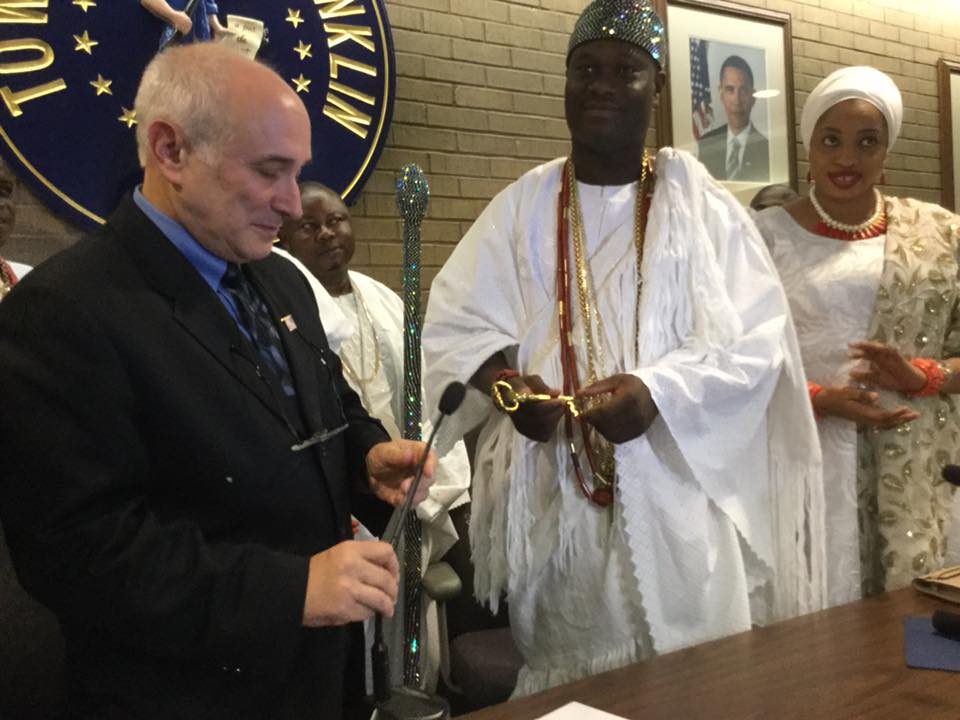 The Ooni of Ife was in USA for the 41st Odunde festival 2016. The turn out was 500,00 plus. Oba Adeyeye Enitan Ogunwusi and other monarchs met up with fellow country men and spectators who attended the Annual Odunde festival. The King performed the Olokun Veneration ceremony on the Philadelphia bridge. He also stopped by New Jersey to meet with American law makers who honored him by presenting him the key to the city of Summerset, Franklin Township New Jersey. The presentation was done by Honourable Mayor Philip Kramer.
